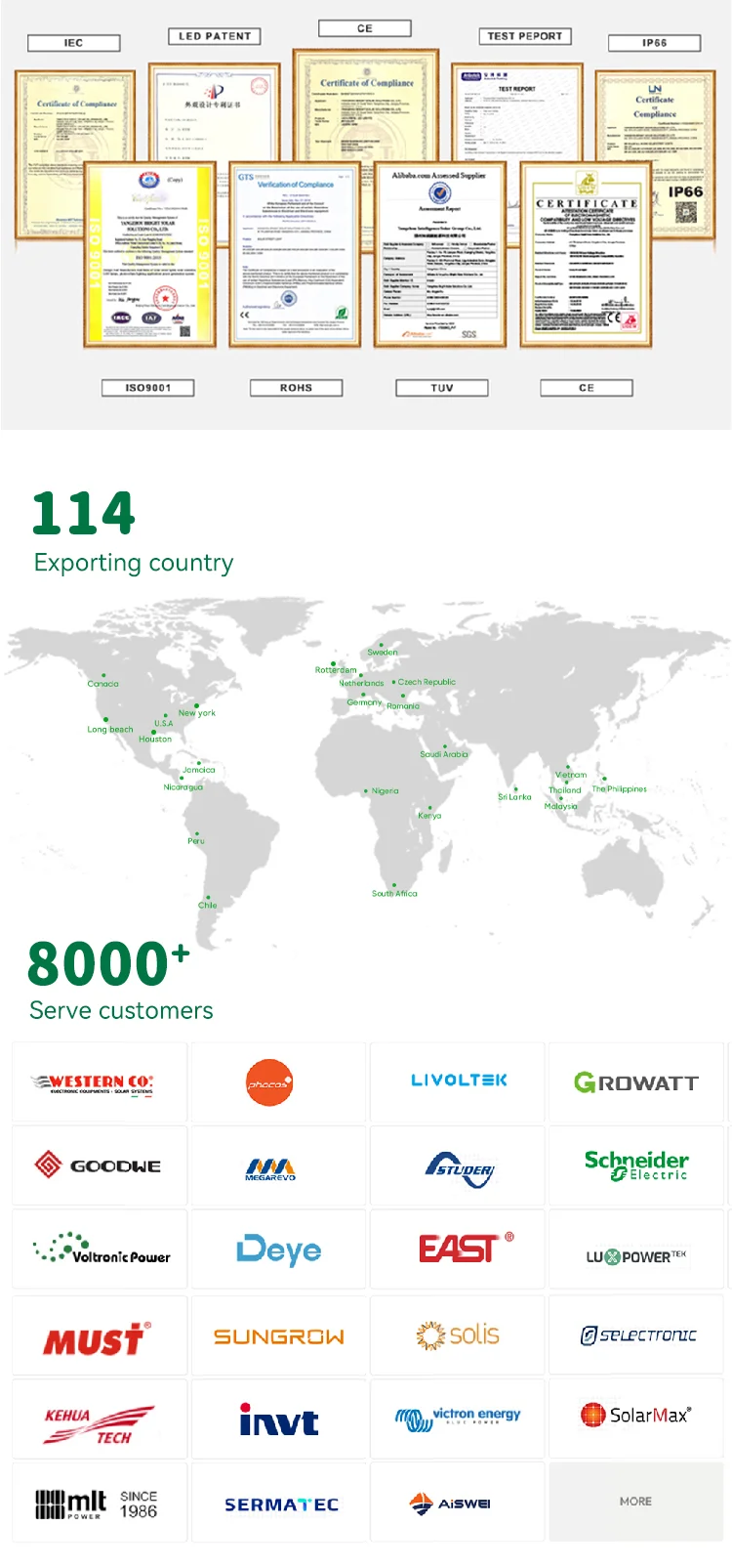 Vida útil do projeto: 20 anos. Caso o cliente deseje cabos mais longos, o preço precisará ser confirmado novamente.